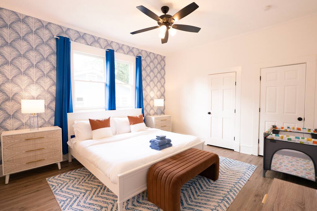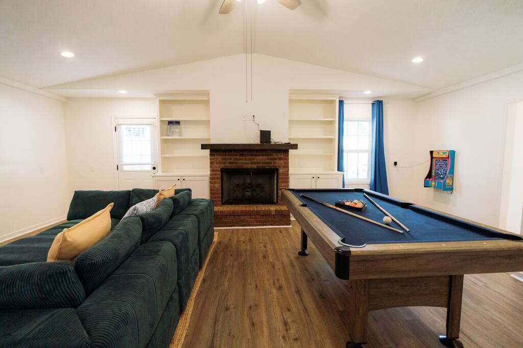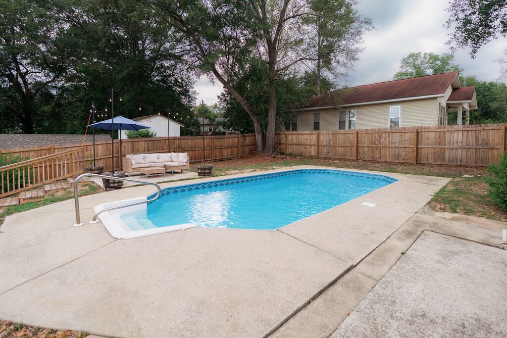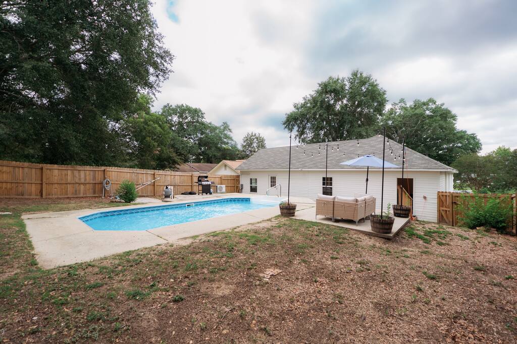 The White Hummingbird is the perfect blend of comfort and convenience. It's is a unique Mediterranean designed, spacious home in Columbus, offering exceptional amenities and a perfect balance of peace and proximity to local attractions for a memorable stay. <b>WHY STAY WITH US?</b> → Situated about <b>10 miles from Fort Benning</b> making it a short drive for military families attending ceremonies or graduations. → Just <b> 5 miles from the Columbus Metropolitan Airport (CSG)</b> and </b>6-10 miles from white water rafting</b> on the Chattahoochee River. → Spacious backyard with a Private pool, game room with pool table, Everyone has something to do. → Wi-Fi, washer & dryer, and a 65” SmartTV with Roku for all your needs <<b>The kitchen is a chef's dream, equipped with:</b> → Stainless steel appliances, granite counters, and every cooking essential → Blender for smoothies or mixed drinks. → An array of glassware, wine glasses, and opener for evening celebrations. → Krups coffee maker. <b>Entertainment and leisure at its best:</b> → Engaging game room with <b>Pool Table</b> and arcade → Private Pool: Dive into relaxation in your own secluded oasis <b>Sleeping arrangements are tailored for comfort and convenience:</b> → Bedroom #1 : A King bed in the master suite with an en-suite bathroom for privacy. → Bedroom #2: Two queen beds ideal for groups or families. → Bedroom #3: Two Queen trundle bed with that can easily sleep 6 → Bedroom #4: Queen bed. The White Humming Bird beautifully styled, offering ample space, a host of amenities, blends warm elegance and modern comfort for families, friends, or business travelers. Steps from local shops, dining & easy access to Fort Benning. <b>Living Area:</b> Serene Retreat with Modern Comforts Experience the calm charm of the Mediterranean colors, spacious living room designed for both style and comfort. With an abundance of plush seating, including a huge sectional easts 6, there's room for everyone to relax and enjoy. The 65" HD TV ensures top-notch entertainment. Perfect for large groups or family gatherings, this space is all about creating memories in comfort and style. <b>Sleek Gourmet Kitchen:</b> Discover a charming and functional kitchen that offers the perfect balance of connection and privacy. Located just steps away from the dining room, this slightly detached space provides a cozy retreat for culinary creations while keeping the dining area within easy reach. With modern appliances, generous counter space, and all the essentials, it’s ideal for preparing everything from quick breakfasts to elaborate dinners. Its thoughtful layout ensures you can enjoy the convenience of proximity while maintaining a quieter, focused cooking environment. <b>Dinning Area:</b> Gather together in this blue and white dining room, located in the heart of the house. This inviting area features a large wooden table with seating for eight, perfect for family meals, game nights, or group gatherings. The white and bright design add charm and character. With its proximity to both the reading nook and kitchen, this dining space is the perfect hub for sharing meals and making memories. <b>Game Area:</b: Endless Fun and Relaxation Haven Get ready for fun and relaxation in the open-concept living and game area! Located behind the kitchen the high ceiling living room offers a view of the sparkling private pool, this game zone features a vibrant pool table with a striking red felt top, perfect for friendly competitions or casual play. A wall-mounted arcade adds an extra layer of entertainment for guests of all ages. The seamless layout ensures everyone stays connected, whether lounging on plush seating or engaging in a game. This dynamic space is ideal for creating memories and keeping the good times rolling!