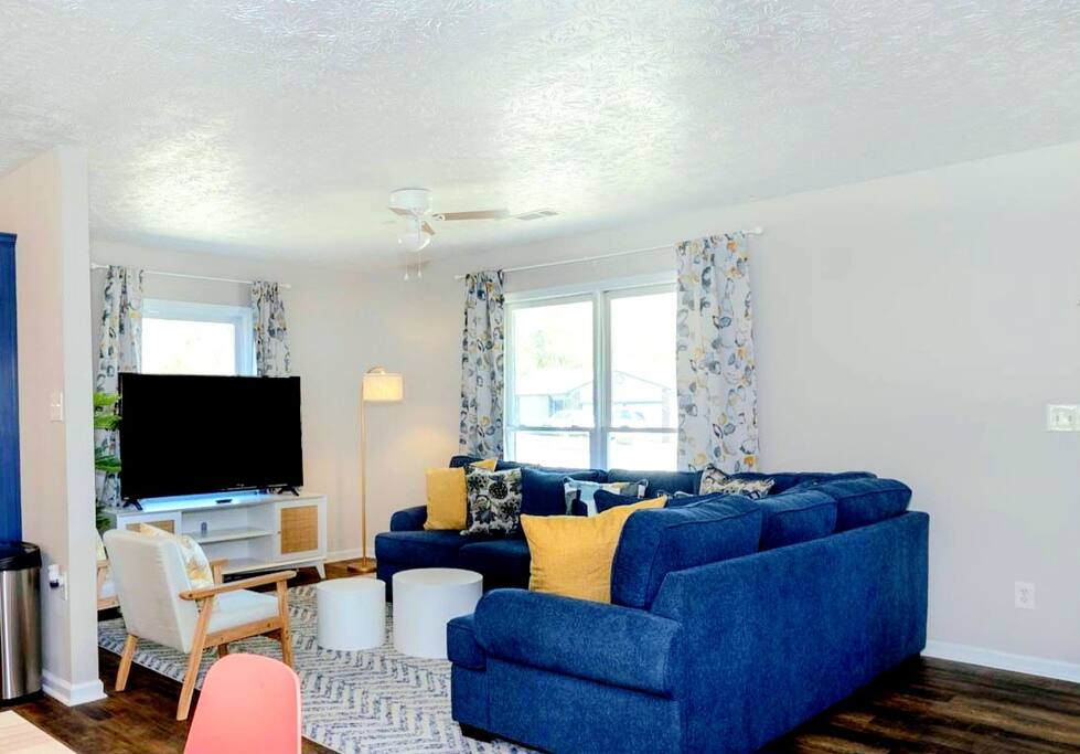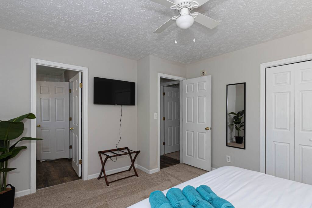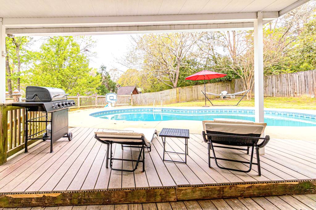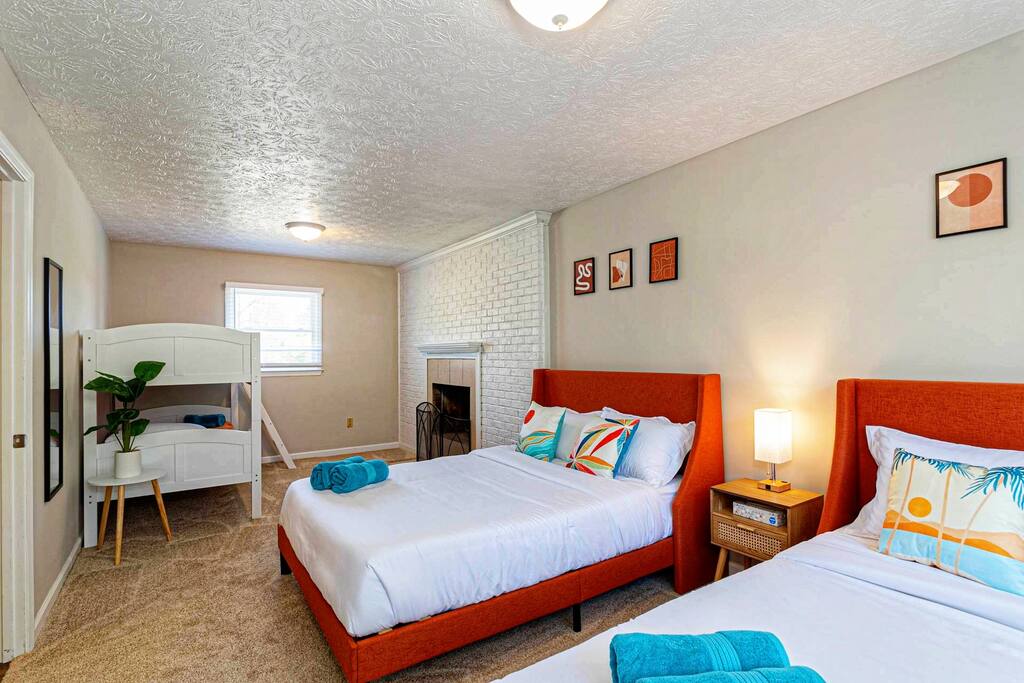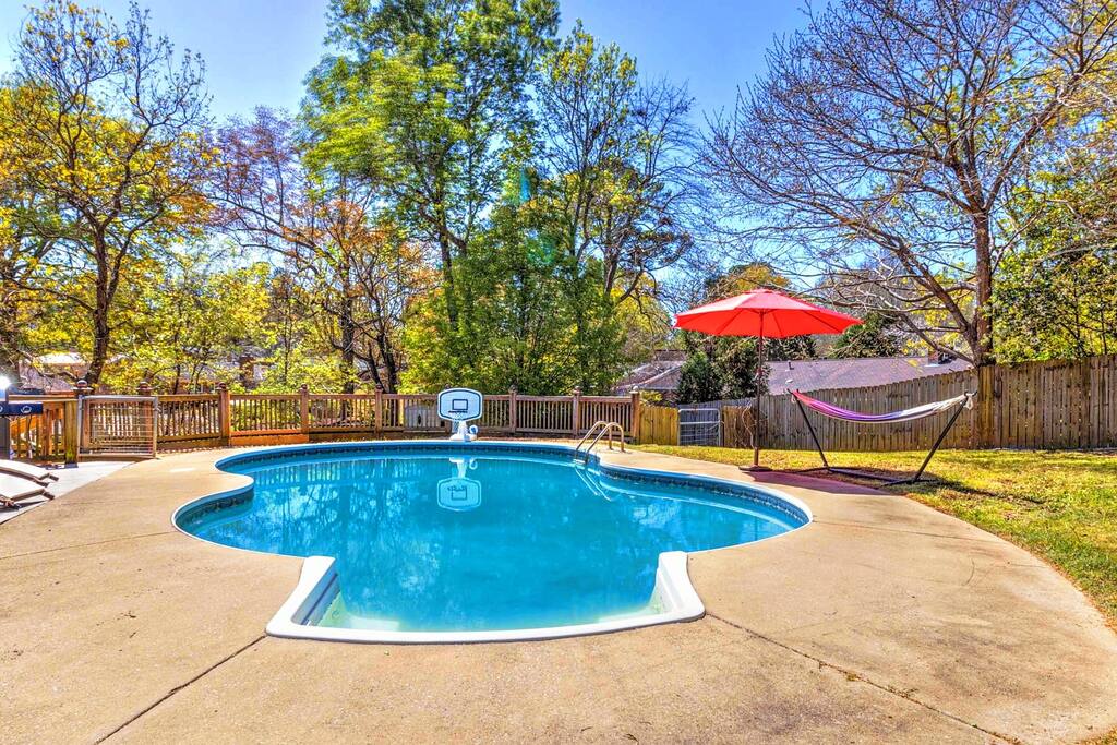 <b>Coming forTurning Blue, Green, Airborne,or OSUT?</b> Step inside he Gold Hummingbird to discover a bright, open layout with multiple living areas, making it easy for everyone to spread out or come together. The fully equipped kitchen has everything you need to cook hearty meals, and the spacious dining area is perfect for gathering around after a day of exploring or celebrating. Upstairs you'll find cozy bedrooms and a peaceful vibe, while downstairs brings the energy — featuring a game room with activities for all ages and easy access to the backyard. And of course… the pool! Step outside and you’re greeted with your very own guitar-shaped private pool — a fun and unforgettable centerpiece your group will love. Whether you're soaking up the sun, firing up the grill, or enjoying a late-night swim under the stars, this backyard delivers both relaxation and good times. The perfect spot for military families attending <b>Fort Benning graduations</b>, thrill-seekers eager for Chattahoochee River white water rafting, and sports fans catching exciting minor league games. <b>Highlighted features of Gold Humming Bird:</b> → <b>Prime Location</b>: Just minutes from shopping, dining, the army base, the convention center, and the new Minor League Stadium. → Tranquil setting <b>Conveniently located near the U.S. Army's prominent Fort Benning base. </b> → <b>Military discount available</b> Honoring service members with special rates. → Enjoy modern conveniences like high-speed Wi-Fi, a washer & dryer, and a 65” SmartTV with Roku. <b>The kitchen is a chef's dream features:</b> → Stainless steel appliances, granite countertops, and all the essentials for cooking. → Blender for smoothies or cocktails → A variety of glassware, including wine glasses and an opener for evening celebrations → Krups coffee maker for your morning brew <b>Entertainment and leisure at its best:</b> → Engaging game room with Soccer table, Huge bean Bags and Arcade game → A Private sparkling pool for complete relaxation. → Perfect backyard escape filled with outdoor enjoyment → Outdoor BBQ. <b>Sleeping arrangements are tailored for comfort and convenience:</b> → Bedroom #1 : Upstairs Queen bed with a bunk bed for friends or children Upstairs A king bed in the master suite with an en-suite bathroom for privacy → Bedroom #2: Upstairs King bed in the master suite with a Jack & Jill en-suite bathroom for privacy.. → Bedroom #3: Upstairs offering a cozy Queen bed for a restful night's sleep → Bedroom #4: Downstairs Two Queen beds and a bunk bed, ideal for groups or families. Available for groups of 10 or more. → Bedroom #5: Downstairs Game room with an opening sofa bed to give some more room. The Gold Humming Bird stands out as one of the few spacious homes in Columbus, providing plenty of room, excellent amenities, and a harmonious mix of serenity and nearby attractions for an unforgettable experience. <b>Living Area</b>: Serene Retreat with Modern Comforts Step into a welcoming open-concept space, where modern style meets comfort. The vibrant blue kitchen with sleek cabinets and stainless steel appliances complements the chic dining area, while the living space features plush sofas and a touch of coastal charm. Enjoy home-cooked meals at the stylish table, unwind in front of the 65” Smart TV, or bask in the natural light pouring in through the double doors that lead to your private outdoor retreat. This thoughtfully designed home is perfect for comfort, connection, and relaxation. <b>Sleek Gourmet Kitchen</b>: Meets Family-Friendly Dining. Step into the heart of the home, our fully-equipped kitchen, where sleek design meets ultimate functionality. Wooden Butcher Block countertops and stainless steel appliances set the stage for your culinary creations, while the open layout fosters social cooking and lively conversation. A vibrant breakfast nook in beach-inspired colors adds a cheerful spot for morning coffee or quick meals. The open-concept dining area features a modern table, perfect for family feasts, casual brunches, or game nights. Sunlight streams through the doors, illuminating the space and offering a view of the pool and backyard, enhancing the inviting atmosphere. <b>Game Area</b>: Endless Fun and Relaxation Awaits Step into our downstairs game room, a perfect retreat offering endless entertainment while ensuring peace and quiet for the rest of the home. Challenge friends to lively foosball or arcade matches, or simply enjoy the vibrant atmosphere. <b>Outdoor pool & BBQ:</b> Nature's Playground and Grilling Paradise Step into your own private backyard oasis, where relaxation and fun come together under the open sky. Lounge in the inviting hammock shaded by a bright red umbrella, perfect for an afternoon nap or reading a good book. Take a refreshing dip in the sparkling pool, or fire up the grill for a delicious barbecue feast with family and friends. The spacious patio area offers plenty of room for outdoor gatherings, while the surrounding greenery and gentle sway of the trees create a peaceful, serene environment. It's the ideal setting for creating memories, whether basking in the sunshine or enjoying a cool evening breeze.