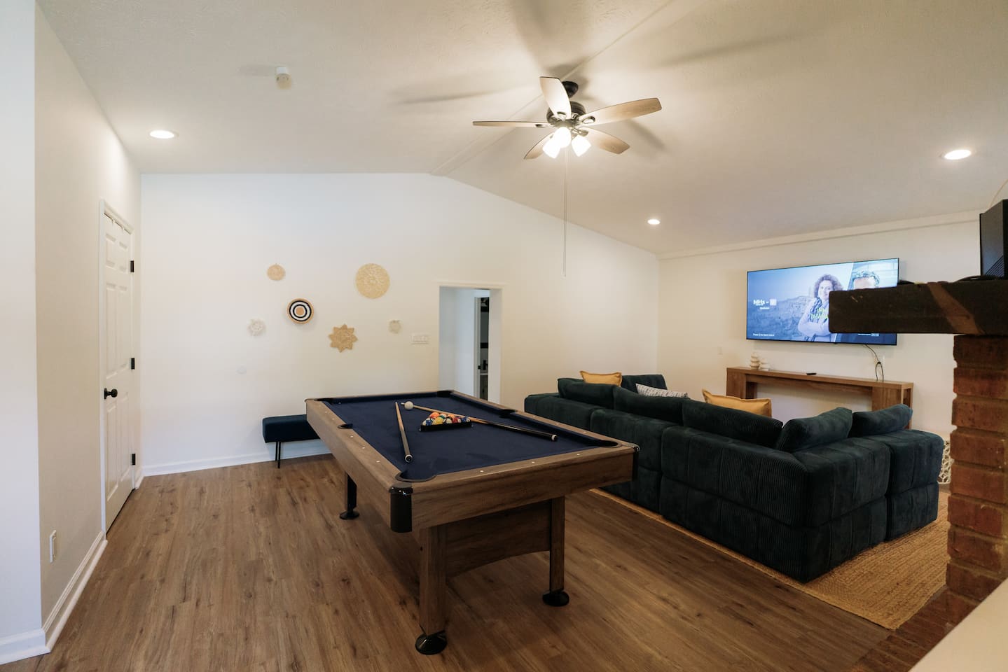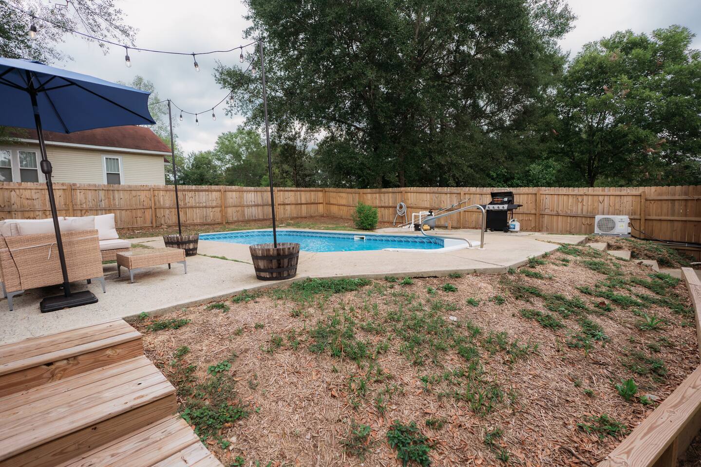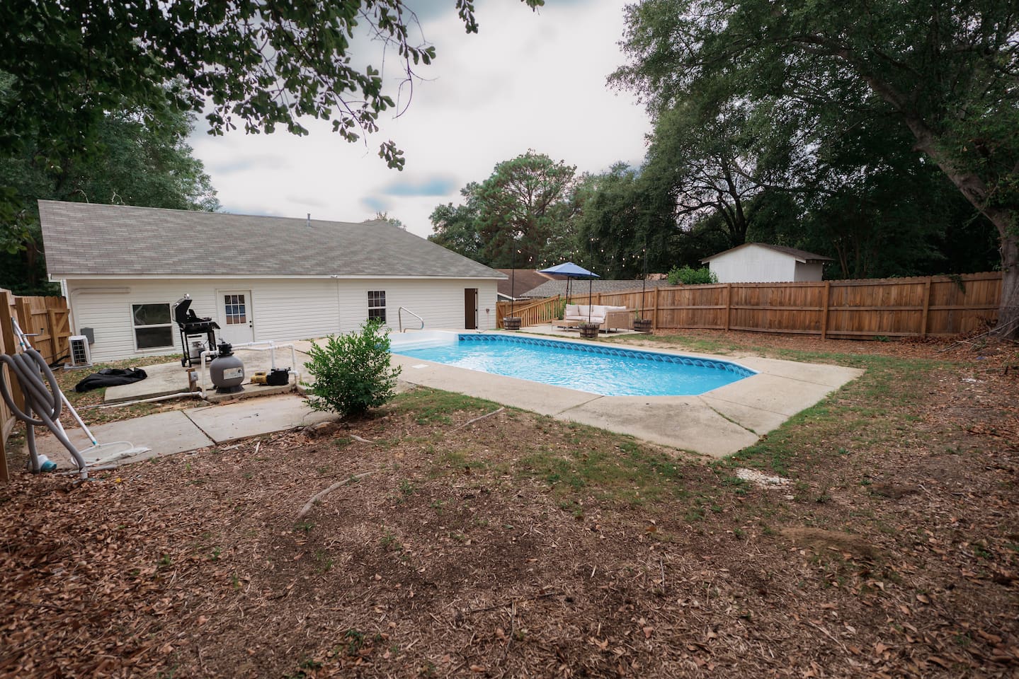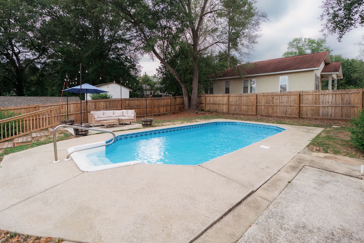 Click the ❤️ save Button in the top-right corner to easily find us again before your dates are booked. Here, your family will gather around the big dinnning table, laugh in the spacious cozy living room, cook late-night meals in fully equipped kitchen, and wake up to quiet, peaceful morning before the ceremony. Whether you’re hosting grandparents, siblings, or a whole cheering squad, this is your space to reconnect, recharge, and celebrate one of the proudest milestones of your soldier’s life. <b>Close to base. Full of comfort. Made for memories.</b> Your graduation weekend starts here! <b>The White Hummingbird</b> is your perfect blend of comfort and convenience. <b>WHY STAY WITH US?</b> ➤ Situated about <b>10 miles from Fort Benning</b> ➤ Just <b> 5 miles from the Columbus Metropolitan Airport (CSG)</b> ➤ </b>6-10 miles from white water rafting</b> on the Chattahoochee River. ➤Fully fenced backyard ➤ Private pool for unwinding and celebrating ➤ Game room with Pool Table ➤ Wi-Fi, washer & dryer, and a 65” SmartTV with Roku for all your needs. ➤ Ideal for Military families, tech crews, or long stays <b>Send us a message so we can help you plan your trip</b> <b>The kitchen, a cook’s haven:</b> Set just slightly apart - giving chefs their space while keeping the dining room within reach. The smell of garlic and rosemary wafts through the house as someone stirs a pot on the stove. Clink glasses at the large wooden table for eight, set beneath Mediterranean blue and white tones that echo the tranquility of sea and sky. After dinner? Maybe a board game. Maybe another glass of wine. Maybe a night swim. →Stainless steel appliances, granite counters, and every cooking essential → Blender for smoothies or mixed drinks. → An array of glassware, wine glasses, and opener for evening celebrations. →Krups coffee maker. <b>Sleeping arrangements are tailored for comfort and convenience:</b> At The White Hummingbird, bedtime isn’t just where your day ends - it’s where peace begins. From crisp linens to soft pillows, every bed is made with care — so when the house settles into evening quiet, each guest has a place to retreat, to dream, and to truly rest. → <b>Bedroom #1</b> : A King bed in the master suite with an en-suite bathroom for privacy. The master suite welcomes you first — tucked away for privacy, with a king bed that feels like sleeping on a cloud. As you step inside, the space quiets around you. Soft lighting pools on smooth floors. Here, it’s easy to unwind. Maybe it’s a deep soak in the ensuite bath… maybe it’s just the silence you didn’t realize you needed. → <b>Bedroom #2:</b> Two queen beds ideal for groups or families. The second bedroom, with its two queen beds, is perfect for shared laughter - sisters catching up, teens whispering late into the night, or friends swapping stories under the covers like it’s summer camp all over again → <b>Bedroom #3:</b> Two Queen trundle bed with that can easily sleep 6 Step into the third bedroom, and you’ll find a pair of queen trundle beds - a whimsical, cozy nook that practically calls out for sleepovers, giggles, or simply space to sprawl. With room for up to six, it’s the heartbeat of group stays - a playful mix of comfort and togetherness. → <b>Bedroom #4</b>. And finally, the fourth bedroom offers a single queen bed - simple, elegant, and quiet. Perfect for a solo traveler seeking solitude, or for the early riser who wants the morning light all to themselves. <b>Dinning Area:</b> Here, in the center of The White Hummingbird, the dining room waits like a quiet gathering place of stories and moments yet to happen. Bathed in soft Mediterranean blues and crisp whites, this space is simple, open, and welcoming—like the hug of a friend you haven’t seen in years. The large wooden table, weathered just enough to feel lived in, stretches out, ready to hold whatever you bring to it: steaming platters of home-cooked meals, board games scattered across the surface, the quiet weight of a laptop during a late-night work session. In the morning, it holds sleepy cups of coffee and bright Georgia sunlight. In the evening, it glows under soft lighting, reflecting smiles, flickers of candlelight, and the clink of glasses raised in laughter. Just steps from the kitchen, but set apart enough to feel special, this space becomes the soul of your stay — where conversations linger long after plates are cleared, and time has a way of slowing down, just enough. You’ll remember this room — not for its furniture, but for the way it brought everyone together, effortlessly, as if it had been waiting for you all along. <b>Game Area:</b>: Step into the game room - the heartbeat of the house. The blue-felt <b>pool table</b> beckons under vaulted ceilings, with sunlight pouring in and the private pool shimmering just beyond. A vintage-style <b>arcade machine</b> adds a nostalgic twist, while plush seating offers the perfect spot to cheer from the sidelines — or sneak in a nap. With Roku-enabled 65" Smart TV, fast Wi-Fi, and space for everyone to sprawl, your time indoors feels just as good as a night out.