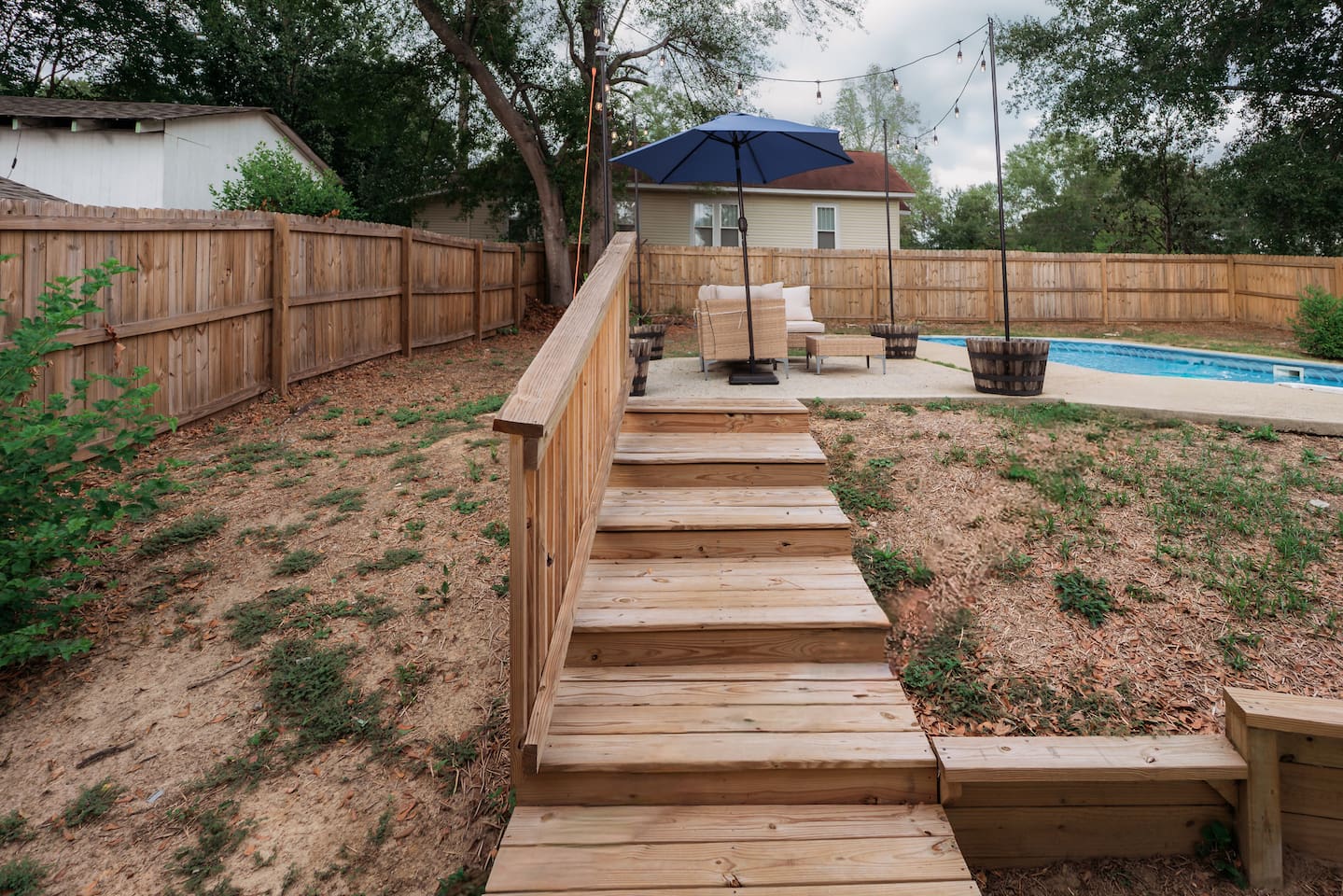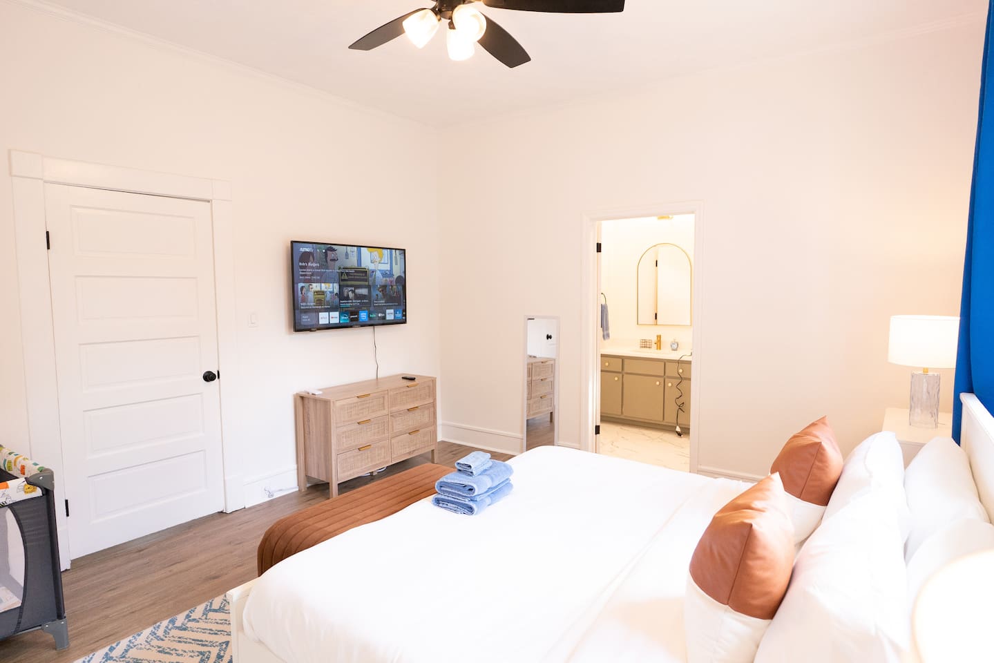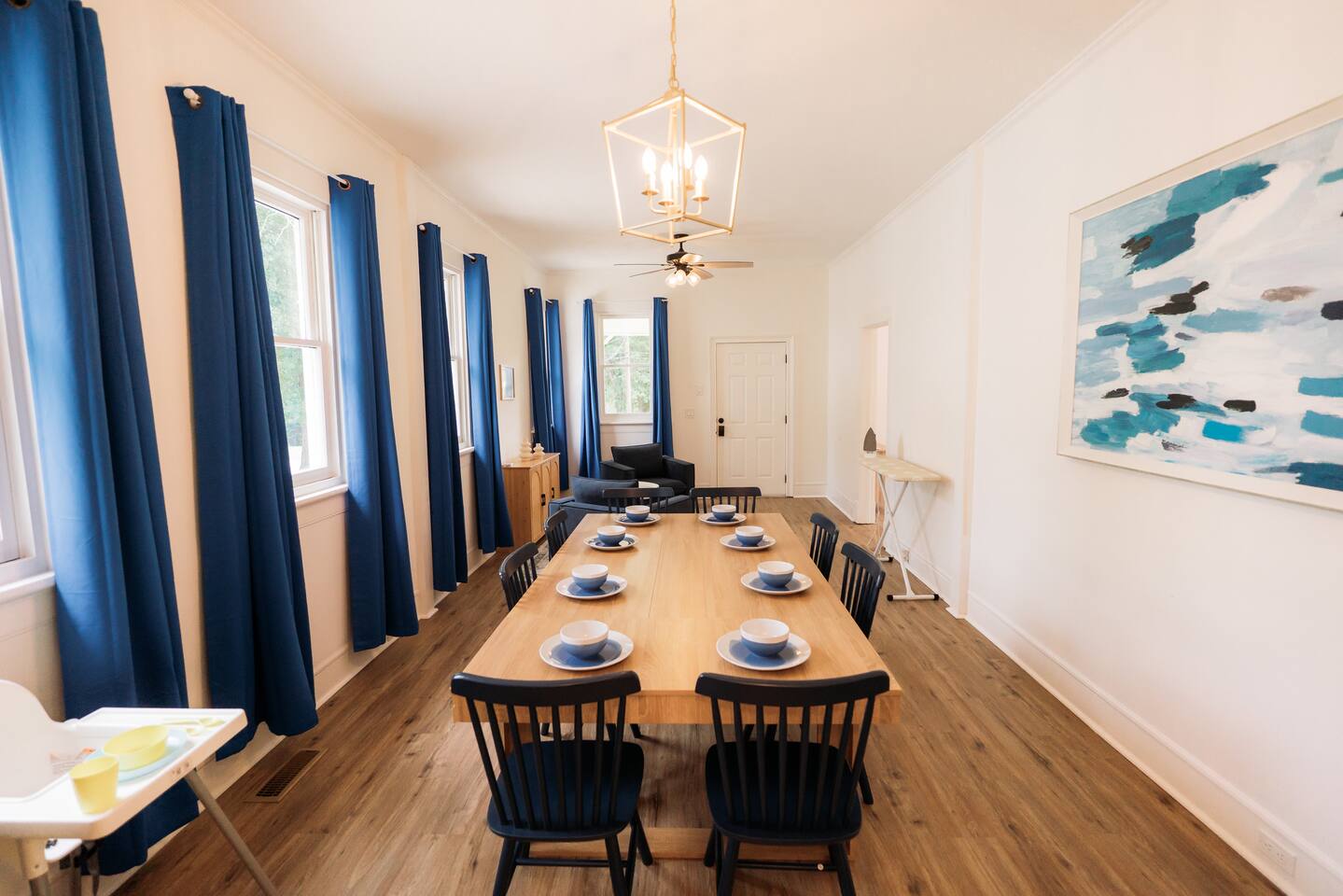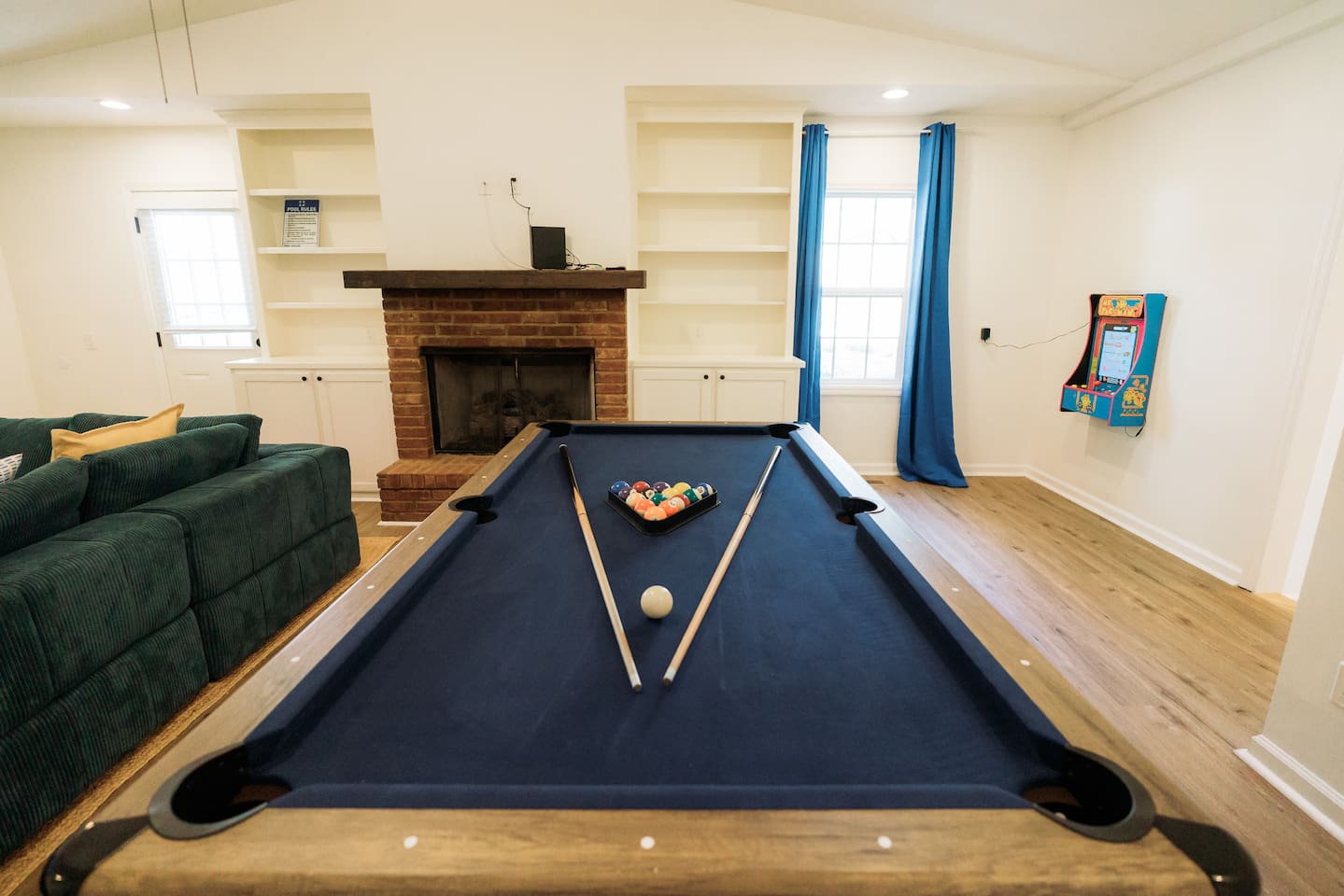 Click the ❤️ save Button in the top-right corner to easily find us again before your dates are booked. Here, your family will gather around the big dinnning table, laugh in the spacious cozy living room, cook late-night meals in fully equipped kitchen, and wake up to quiet, peaceful morning before the ceremony. Whether you’re hosting grandparents, siblings, or a whole cheering squad, this is your space to reconnect, recharge, and celebrate one of the proudest milestones of your soldier’s life. <b>Close to base. Full of comfort. Made for memories.</b> Your graduation weekend starts here! <b>The White Hummingbird</b> is your perfect blend of comfort and convenience. <b>WHY STAY WITH US?</b> ➤ Situated about <b>10 miles from Fort Benning</b> ➤ Just <b> 5 miles from the Columbus Metropolitan Airport (CSG)</b> ➤ </b>6-10 miles from white water rafting</b> on the Chattahoochee River. ➤Fully fenced backyard ➤ Private pool for unwinding and celebrating ➤ Game room with Pool Table ➤ Wi-Fi, washer & dryer, and a 65” SmartTV with Roku for all your needs. ➤ Ideal for Military families, tech crews, or long stays <b>Send us a message so we can help you plan your trip</b> <b>The kitchen, a cook’s haven:</b> Set just slightly apart - giving chefs their space while keeping the dining room within reach. The smell of garlic and rosemary wafts through the house as someone stirs a pot on the stove. Clink glasses at the large wooden table for eight, set beneath Mediterranean blue and white tones that echo the tranquility of sea and sky. After dinner? Maybe a board game. Maybe another glass of wine. Maybe a night swim. →Stainless steel appliances, granite counters, and every cooking essential → Blender for smoothies or mixed drinks. → An array of glassware, wine glasses, and opener for evening celebrations. →Krups coffee maker. <b>Sleeping arrangements are tailored for comfort and convenience:</b> At The White Hummingbird, bedtime isn’t just where your day ends - it’s where peace begins. From crisp linens to soft pillows, every bed is made with care — so when the house settles into evening quiet, each guest has a place to retreat, to dream, and to truly rest. → <b>Bedroom #1</b> : A King bed in the master suite with an en-suite bathroom for privacy. The master suite welcomes you first — tucked away for privacy, with a king bed that feels like sleeping on a cloud. As you step inside, the space quiets around you. Soft lighting pools on smooth floors. Here, it’s easy to unwind. Maybe it’s a deep soak in the ensuite bath… maybe it’s just the silence you didn’t realize you needed. → <b>Bedroom #2:</b> Two queen beds ideal for groups or families. The second bedroom, with its two queen beds, is perfect for shared laughter - sisters catching up, teens whispering late into the night, or friends swapping stories under the covers like it’s summer camp all over again → <b>Bedroom #3:</b> Two Queen trundle bed with that can easily sleep 6 Step into the third bedroom, and you’ll find a pair of queen trundle beds - a whimsical, cozy nook that practically calls out for sleepovers, giggles, or simply space to sprawl. With room for up to six, it’s the heartbeat of group stays - a playful mix of comfort and togetherness. → <b>Bedroom #4</b>. And finally, the fourth bedroom offers a single queen bed - simple, elegant, and quiet. Perfect for a solo traveler seeking solitude, or for the early riser who wants the morning light all to themselves. <b>Dinning Area:</b> Here, in the center of The White Hummingbird, the dining room waits like a quiet gathering place of stories and moments yet to happen. Bathed in soft Mediterranean blues and crisp whites, this space is simple, open, and welcoming—like the hug of a friend you haven’t seen in years. The large wooden table, weathered just enough to feel lived in, stretches out, ready to hold whatever you bring to it: steaming platters of home-cooked meals, board games scattered across the surface, the quiet weight of a laptop during a late-night work session. In the morning, it holds sleepy cups of coffee and bright Georgia sunlight. In the evening, it glows under soft lighting, reflecting smiles, flickers of candlelight, and the clink of glasses raised in laughter. Just steps from the kitchen, but set apart enough to feel special, this space becomes the soul of your stay — where conversations linger long after plates are cleared, and time has a way of slowing down, just enough. You’ll remember this room — not for its furniture, but for the way it brought everyone together, effortlessly, as if it had been waiting for you all along. <b>Game Area:</b>: Step into the game room - the heartbeat of the house. The blue-felt <b>pool table</b> beckons under vaulted ceilings, with sunlight pouring in and the private pool shimmering just beyond. A vintage-style <b>arcade machine</b> adds a nostalgic twist, while plush seating offers the perfect spot to cheer from the sidelines — or sneak in a nap. With Roku-enabled 65" Smart TV, fast Wi-Fi, and space for everyone to sprawl, your time indoors feels just as good as a night out.