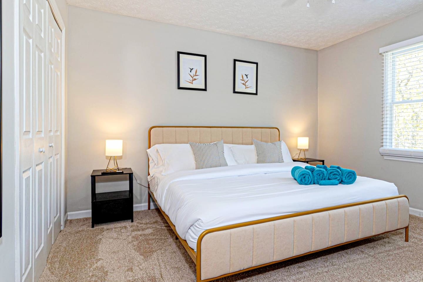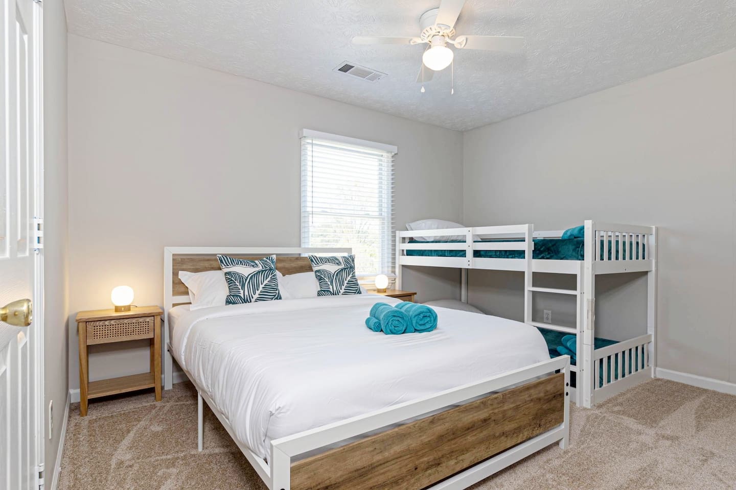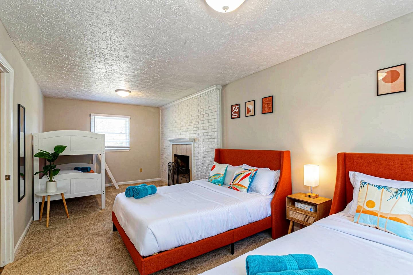 <b>Coming forTurning Blue, Green, Airborne,or OSUT?</b> Step inside he Gold Hummingbird to discover a bright, open layout with multiple living areas, making it easy for everyone to spread out or come together. The fully equipped kitchen has everything you need to cook hearty meals, and the spacious dining area is perfect for gathering around after a day of exploring or celebrating. Upstairs you'll find cozy bedrooms and a peaceful vibe, while downstairs brings the energy — featuring a game room with activities for all ages and easy access to the backyard. And of course… the pool! Step outside and you’re greeted with your very own guitar-shaped private pool — a fun and unforgettable centerpiece your group will love. Whether you're soaking up the sun, firing up the grill, or enjoying a late-night swim under the stars, this backyard delivers both relaxation and good times. The perfect spot for military families attending <b>Fort Benning graduations</b>, thrill-seekers eager for Chattahoochee River white water rafting, and sports fans catching exciting minor league games. <b>Highlighted features of Gold Humming Bird:</b> → <b>Prime Location</b>: Just minutes from shopping, dining, the army base, the convention center, and the new Minor League Stadium. → Tranquil setting <b>Conveniently located near the U.S. Army's prominent Fort Benning base. </b> → <b>Military discount available</b> Honoring service members with special rates. → Enjoy modern conveniences like high-speed Wi-Fi, a washer & dryer, and a 65” SmartTV with Roku. <b>The kitchen is a chef's dream features:</b> → Stainless steel appliances, granite countertops, and all the essentials for cooking. → Blender for smoothies or cocktails → A variety of glassware, including wine glasses and an opener for evening celebrations → Krups coffee maker for your morning brew <b>Entertainment and leisure at its best:</b> → Engaging game room with Soccer table, Huge bean Bags and Arcade game → A Private sparkling pool for complete relaxation. → Perfect backyard escape filled with outdoor enjoyment → Outdoor BBQ. <b>Sleeping arrangements are tailored for comfort and convenience:</b> → Bedroom #1 : Upstairs Queen bed with a bunk bed for friends or children Upstairs A king bed in the master suite with an en-suite bathroom for privacy → Bedroom #2: Upstairs King bed in the master suite with a Jack & Jill en-suite bathroom for privacy.. → Bedroom #3: Upstairs offering a cozy Queen bed for a restful night's sleep → Bedroom #4: Downstairs Two Queen beds and a bunk bed, ideal for groups or families. Available for groups of 10 or more. → Bedroom #5: Downstairs Game room with an opening sofa bed to give some more room. The Gold Humming Bird stands out as one of the few spacious homes in Columbus, providing plenty of room, excellent amenities, and a harmonious mix of serenity and nearby attractions for an unforgettable experience. <b>Living Area</b>: Serene Retreat with Modern Comforts Step into a welcoming open-concept space, where modern style meets comfort. The vibrant blue kitchen with sleek cabinets and stainless steel appliances complements the chic dining area, while the living space features plush sofas and a touch of coastal charm. Enjoy home-cooked meals at the stylish table, unwind in front of the 65” Smart TV, or bask in the natural light pouring in through the double doors that lead to your private outdoor retreat. This thoughtfully designed home is perfect for comfort, connection, and relaxation. <b>Sleek Gourmet Kitchen</b>: Meets Family-Friendly Dining. Step into the heart of the home, our fully-equipped kitchen, where sleek design meets ultimate functionality. Wooden Butcher Block countertops and stainless steel appliances set the stage for your culinary creations, while the open layout fosters social cooking and lively conversation. A vibrant breakfast nook in beach-inspired colors adds a cheerful spot for morning coffee or quick meals. The open-concept dining area features a modern table, perfect for family feasts, casual brunches, or game nights. Sunlight streams through the doors, illuminating the space and offering a view of the pool and backyard, enhancing the inviting atmosphere. <b>Game Area</b>: Endless Fun and Relaxation Awaits Step into our downstairs game room, a perfect retreat offering endless entertainment while ensuring peace and quiet for the rest of the home. Challenge friends to lively foosball or arcade matches, or simply enjoy the vibrant atmosphere. <b>Outdoor pool & BBQ:</b> Nature's Playground and Grilling Paradise Step into your own private backyard oasis, where relaxation and fun come together under the open sky. Lounge in the inviting hammock shaded by a bright red umbrella, perfect for an afternoon nap or reading a good book. Take a refreshing dip in the sparkling pool, or fire up the grill for a delicious barbecue feast with family and friends. The spacious patio area offers plenty of room for outdoor gatherings, while the surrounding greenery and gentle sway of the trees create a peaceful, serene environment. It's the ideal setting for creating memories, whether basking in the sunshine or enjoying a cool evening breeze.